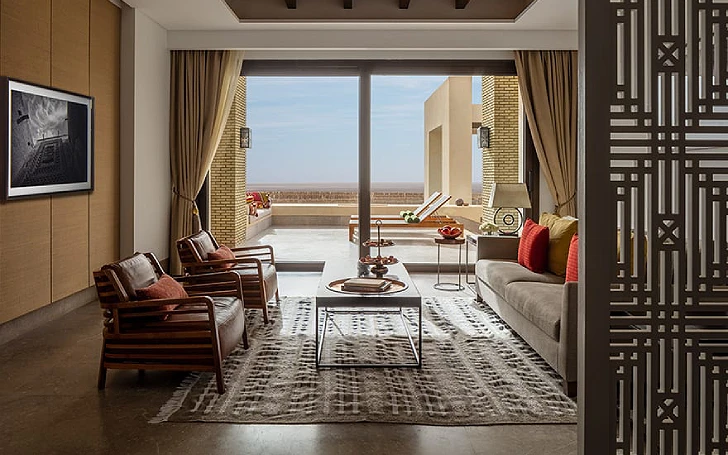 Situé dans le désert, ce somptueux havre de paix se compose de deux chambres avec salle de bains attenante, ouvrant sur un salon central. À l'extérieur, la terrasse vous permet de prendre votre repas en plein air, servi par votre majordome. Parmi tous les hôtels de luxe en Tunisie, The Mora Sahara Tozeur vous invite à vous prélasser au bord de la piscine, avant de vous promener au coucher du soleil. Lire plus