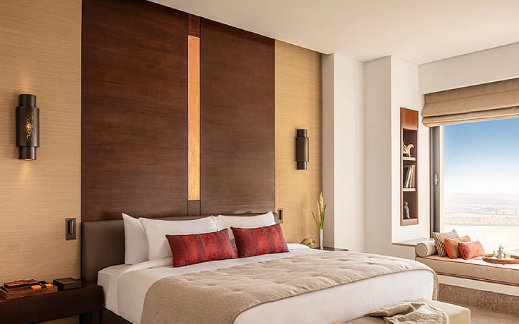 Quintessence du luxe et des grands espaces, l’exceptionnelle The Mora Royal Villa offre une intimité totale et une vue spectaculaire sur le désert. Située dans un endroit reculé du resort, cette villa spéciale est une oasis pour des réunions exclusives ou des escapades en famille. Avec trois chambres spacieuses, deux salons et une salle à manger séparée, The Mora Royal Villa dispose d’un salon principal qui s’ouvre sur une vaste terrasse extérieure avec chaises longues et coin repas en plein air. Détendez-vous au bord de la piscine et savourez des festins exclusifs servis par un maître de maison, à l’intérieur ou à l’extérieur. Lire plus