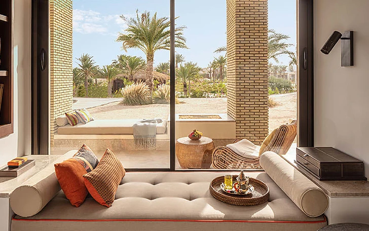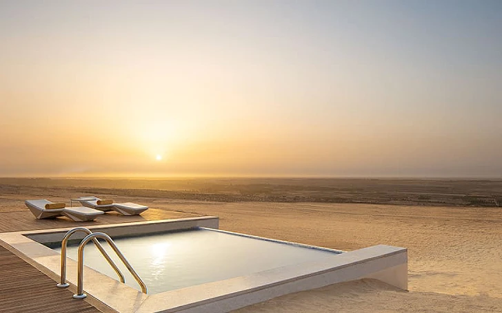 Situé dans le désert, ce somptueux havre de paix se compose de deux chambres avec salle de bains attenante, ouvrant sur un salon central. À l'extérieur, la terrasse vous permet de prendre votre repas en plein air, servi par votre majordome. Parmi tous les hôtels de luxe en Tunisie, The Mora Sahara Tozeur vous invite à vous prélasser au bord de la piscine, avant de vous promener au coucher du soleil. Lire plus