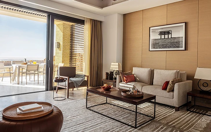 Quintessence du luxe et des grands espaces, l’exceptionnelle The Mora Royal Villa offre une intimité totale et une vue spectaculaire sur le désert. Située dans un endroit reculé du resort, cette villa spéciale est une oasis pour des réunions exclusives ou des escapades en famille. Avec trois chambres spacieuses, deux salons et une salle à manger séparée, The Mora Royal Villa dispose d’un salon principal qui s’ouvre sur une vaste terrasse extérieure avec chaises longues et coin repas en plein air. Détendez-vous au bord de la piscine et savourez des festins exclusifs servis par un maître de maison, à l’intérieur ou à l’extérieur. Lire plus